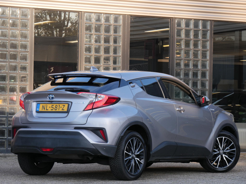 De extra getinte ramen achter en 18inch grote lichtmetalen velgen geven deze Toyota C-HR een flink potie extra uitstraling.