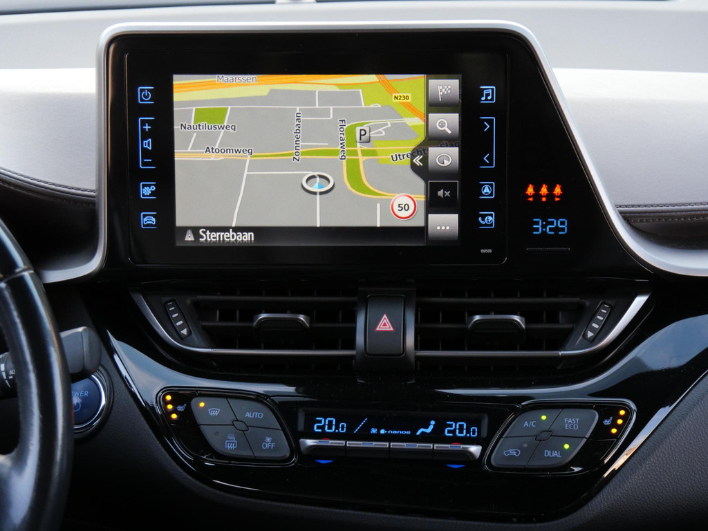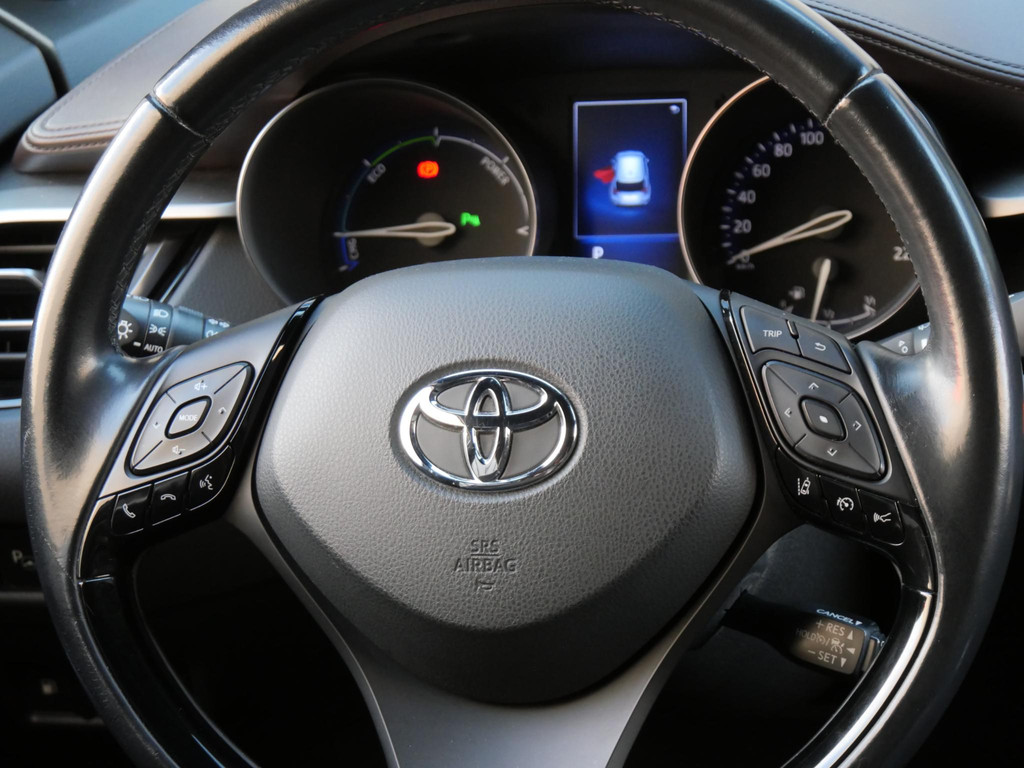 Inparkeren kan haast niet meer fout met deze Toyota C-HR. Zowel voor als achter zijn er parkeersensoren met optische weergave aanwezig en een achteruitrijcamera.