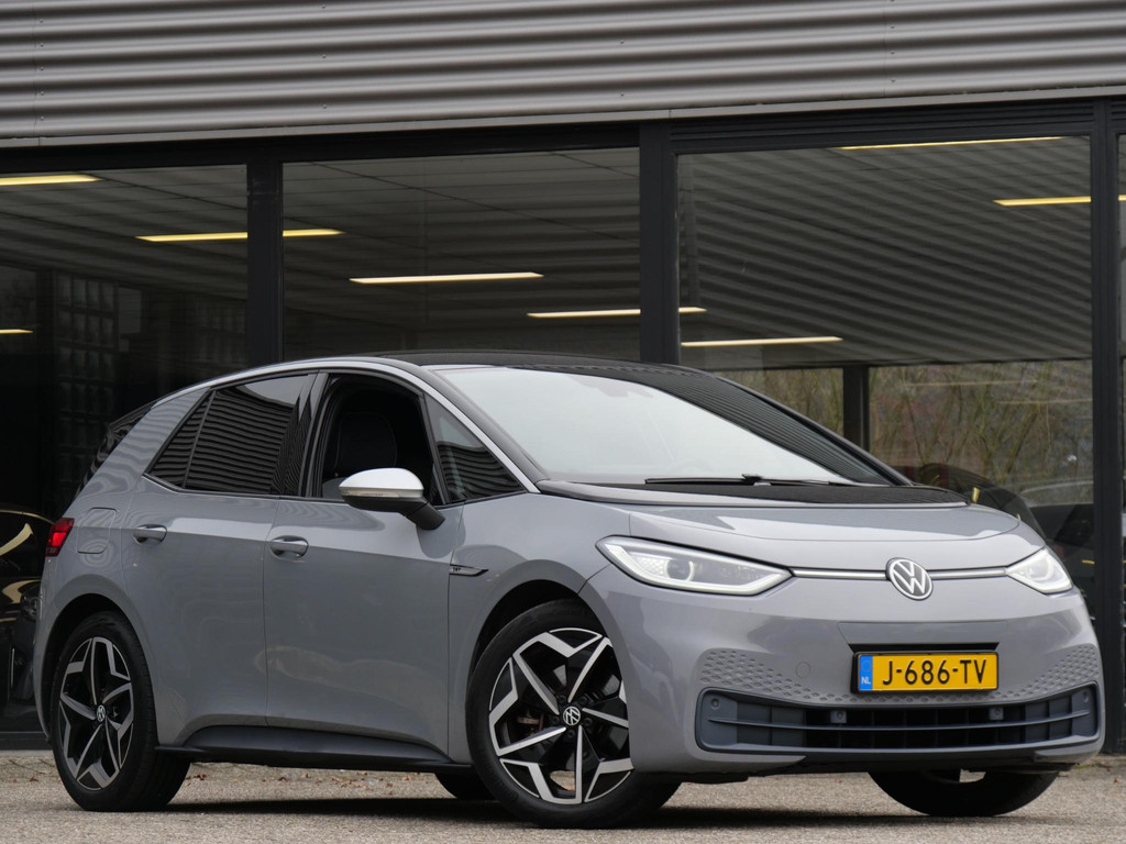 Origineel Nederlands geleverde Volkswagen ID.3 welke is uitgevoerd in de luxe 'First PLUS' uitvoering. De kleurstelling van de auto is helemaal van nu. Gespoten in de kleur 'Moonstone Grey' met een zwart dak. Wat ons betreft de ultieme kleurstelling.