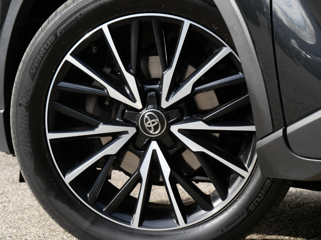Qua uitstraling komt deze Toyota C-HR niets te kort. De C-HR is gespoten in de kleur ' Black Sand Pearl, de achterste ramen zijn extra getint uitgevoerd en de C-HR staat op 18inch grote lichtmetalen velgen in two-tone design.