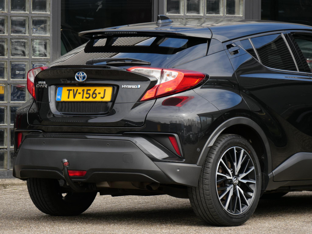 Dit exemplaar betreft een origineel Nederlands geleverde Toyota C-HR o.a. voorzien van het JBL Premium audiosysteem, stoelverwarming, parkeersensoren voor en achter met optische weergave, een achteruitrijcamera, keyless entry/ start en zelfs een trekhaak.