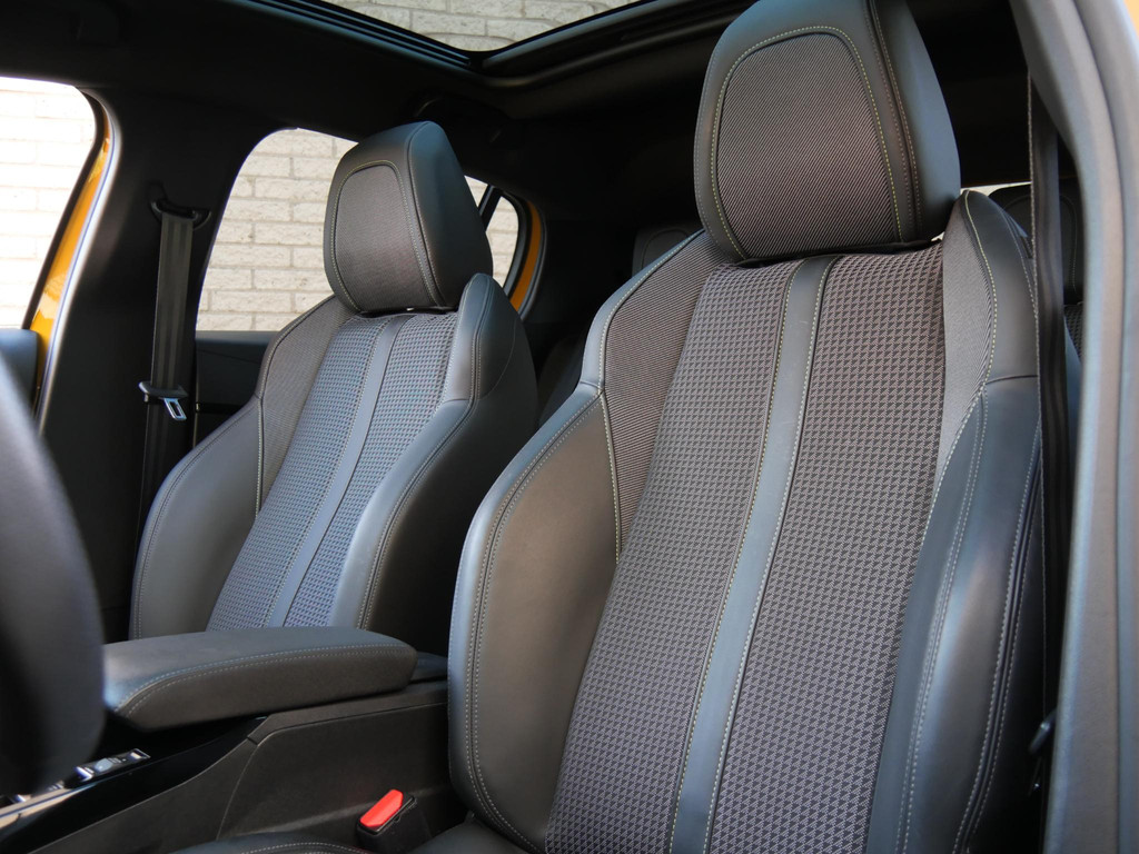 De sportieve trim van de 'GT-Line' wordt in het interieur doorgevoerd. Van RVS dorpellijsten, zwarte hemelbekleding, aluminium sportpedalen, een lederen afgevlakt sportstuur en sportstoelen in half leder stof, het is er allemaal.