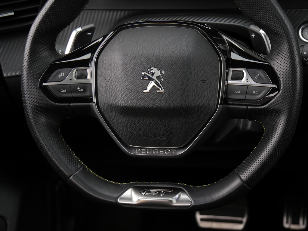 De sportieve trim van de 'GT-Line' wordt in het interieur doorgevoerd. Van RVS dorpellijsten, zwarte hemelbekleding, aluminium sportpedalen, een lederen afgevlakt sportstuur en sportstoelen in half leder stof, het is er allemaal.