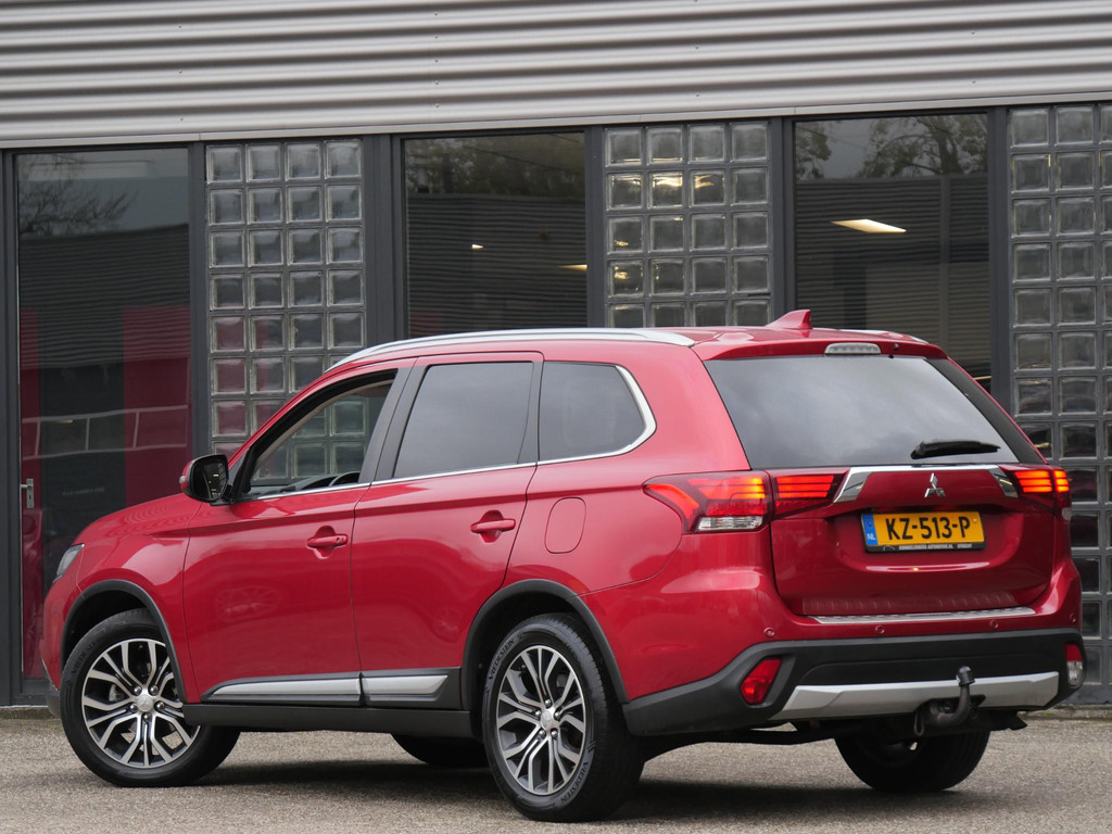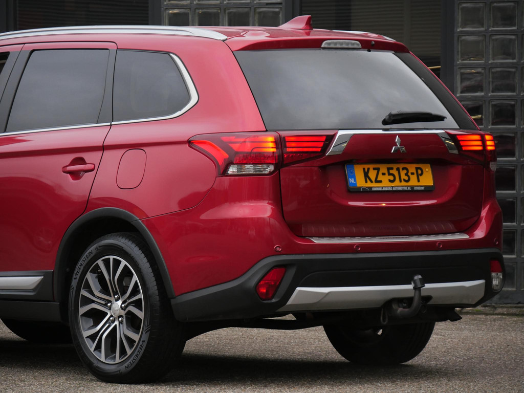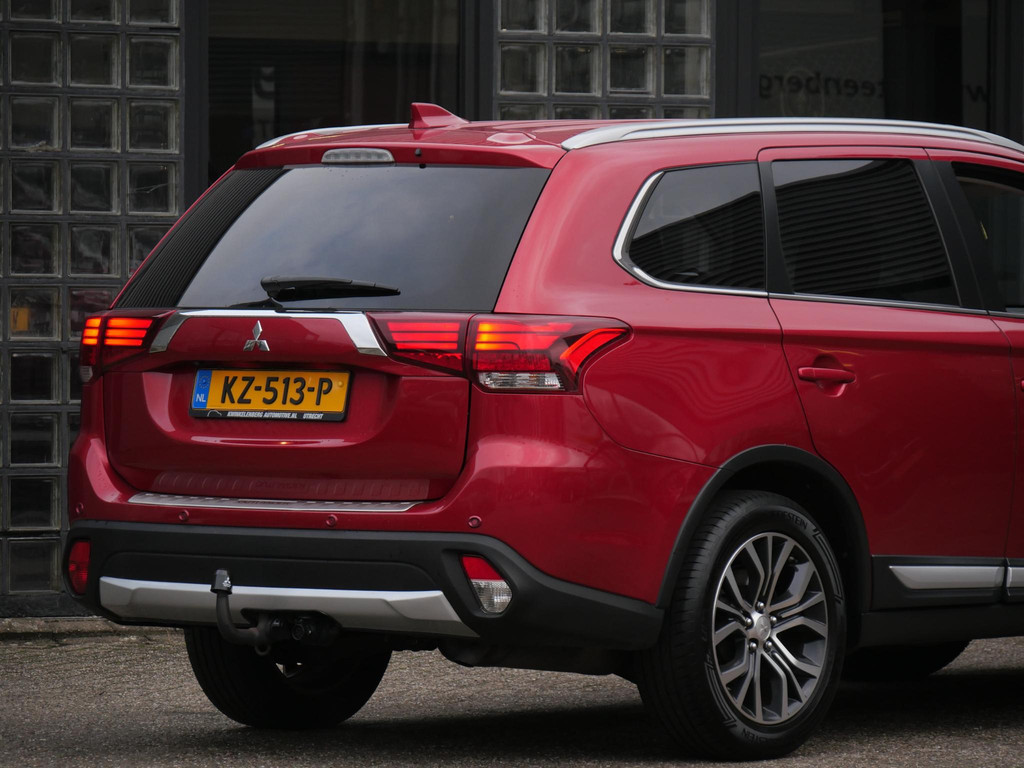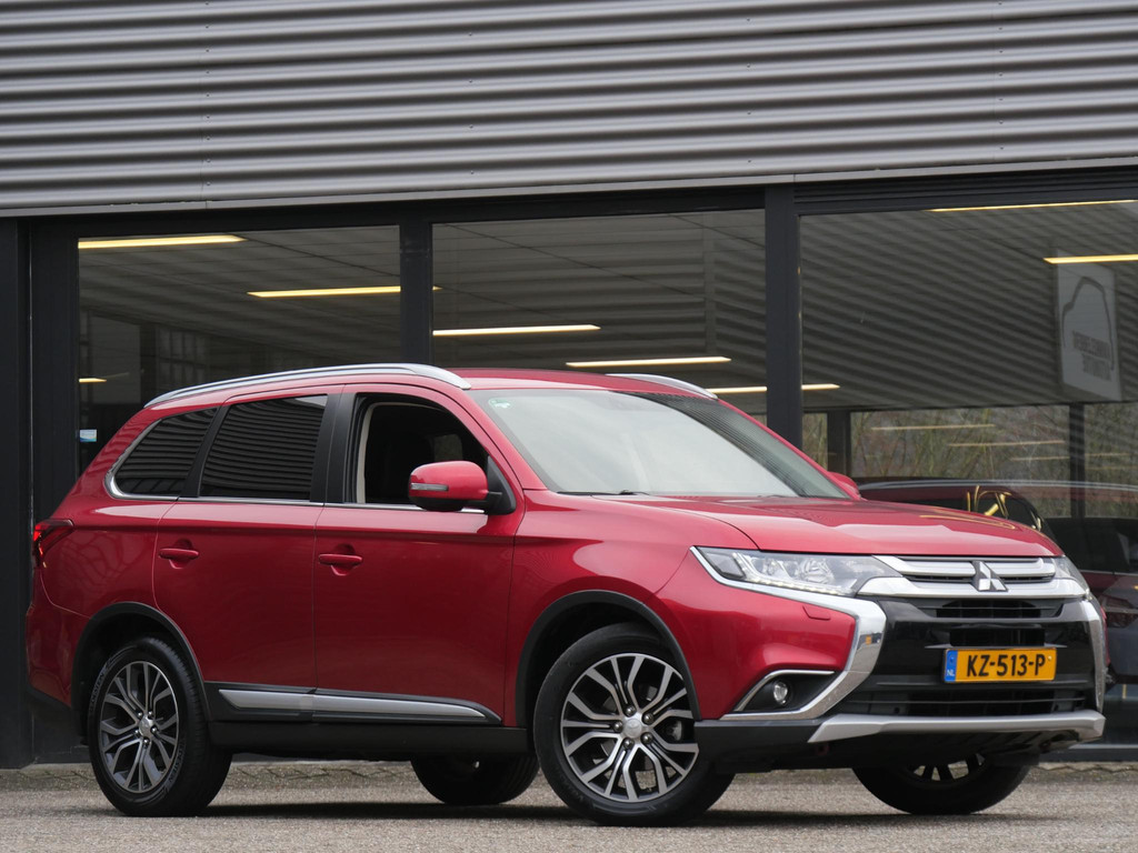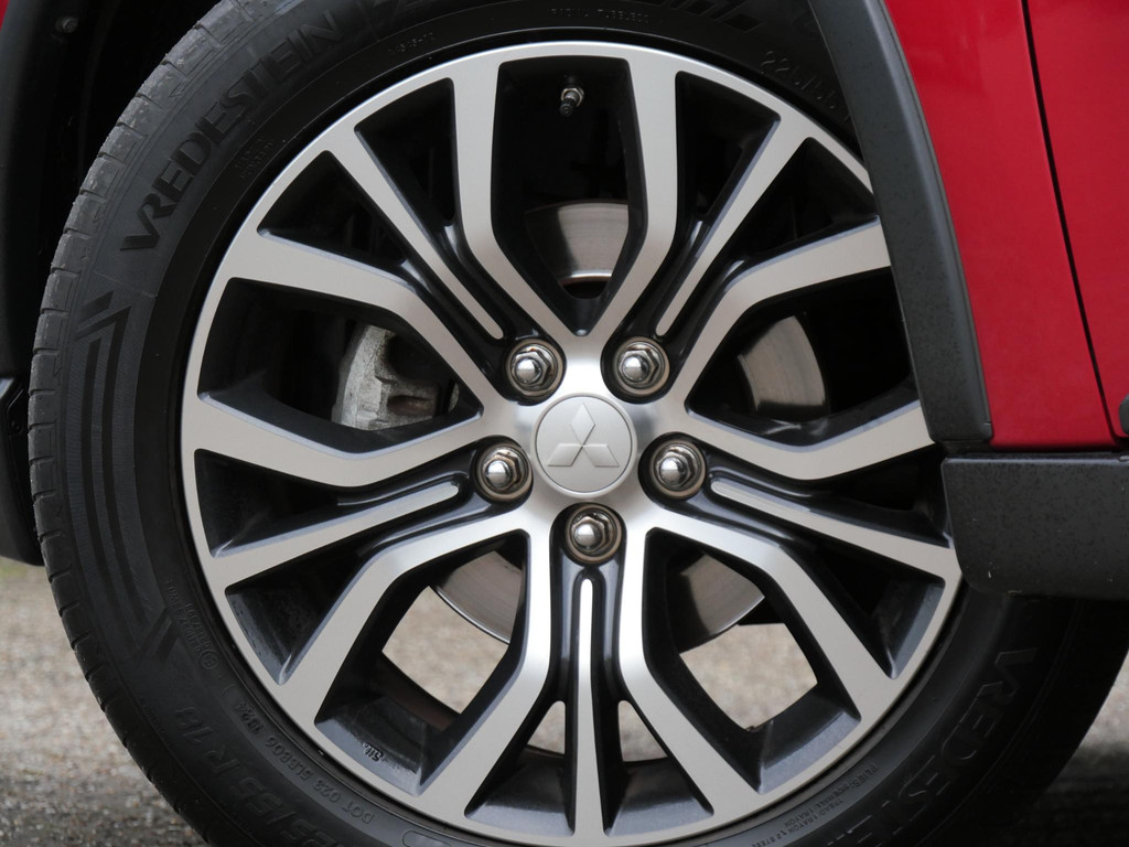 Deze Mitsubishi Outlander is gespoten in de kleur'Orient Red Metallic'. De auto krijgt een flink portie extra uitstraling door de fraaie 18inch two-tone velgen en extra getinte ramen.