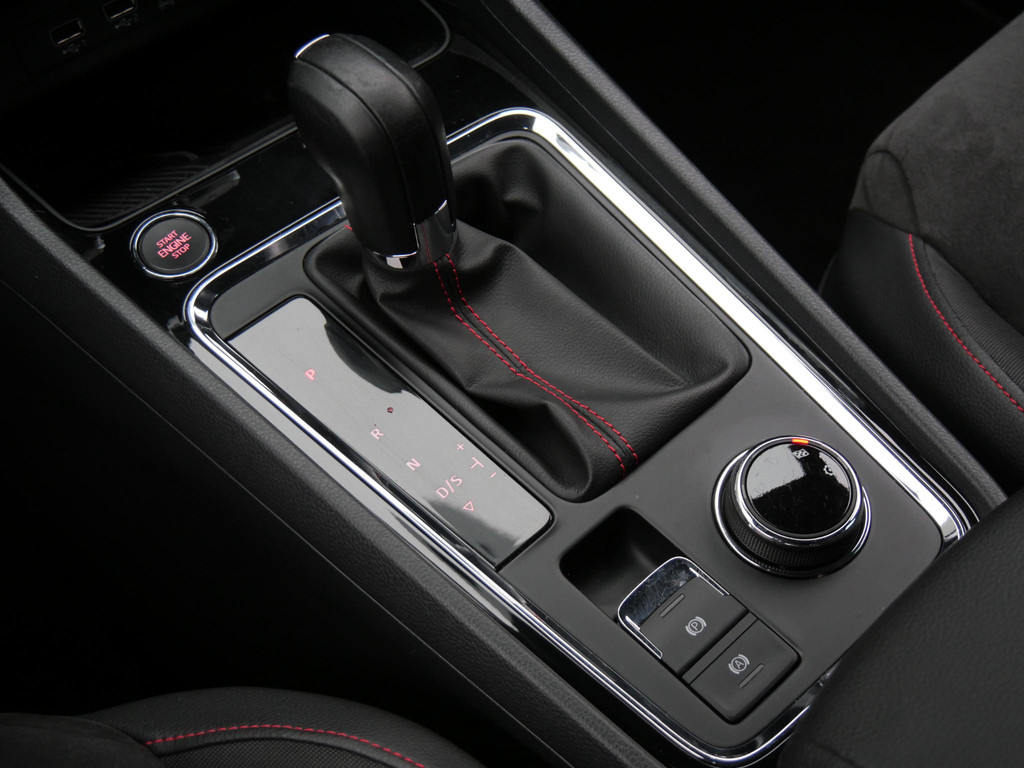 De sportieve extra's worden in het interieur doorgevoerd. De hemelbekleding is donker, antraciet van kleur en de auto is voorzien van aluminium sportpedalen. De sportstoelen zitten als gegoten en zijn in een combinatie van stof/ alcantara uitgevoerd met rode stiksels.