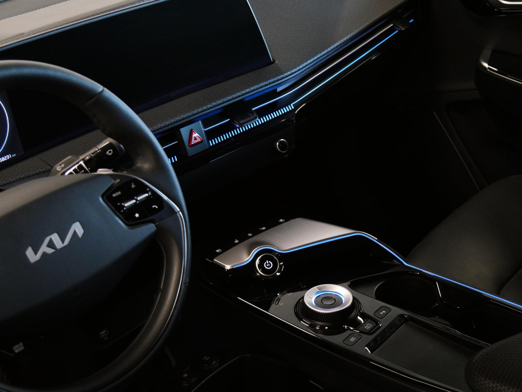 Deze KIA EV6 beschikt in deze 'PLUS' trim over een hele lange lijst aan extra opties af fabriek. Exlcusief op de 'PLUS' uitvoering zijn: Warmtepomp, het Meridian Premium audiosysteem met maar liefst 14 speakers, een elektrisch bedienbare achterklep, elektrisch bedienbare relax stoelen voor met een geheugenfunctie voor de bestuurdersstoel, sfeerverlichting, een zwart lederen interieur met een verwarmbare achterbank, stoelventilatie voor de voorstoelen, en Vehicle-2-Load onder de achterbank.