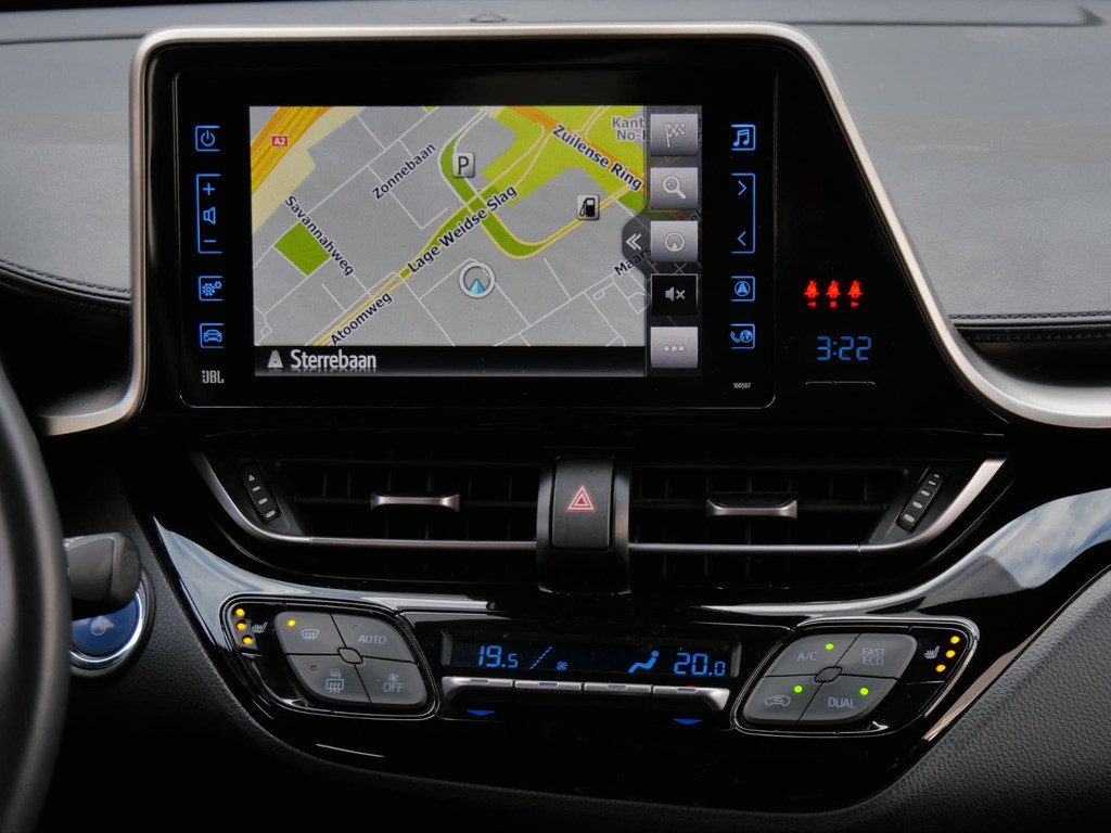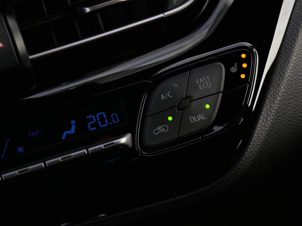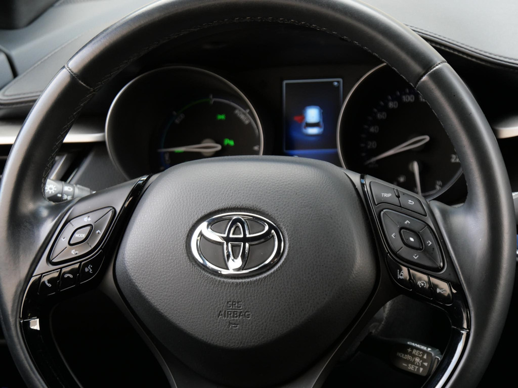 Op het gebied van veiligheid is deze Toyota C-HR helemaal van nu. Adaptieve cruise control, dode hoek detectie, rijstrooksensor, verkeersbordenherkenning en botswaarschuwing zijn aanwezig.