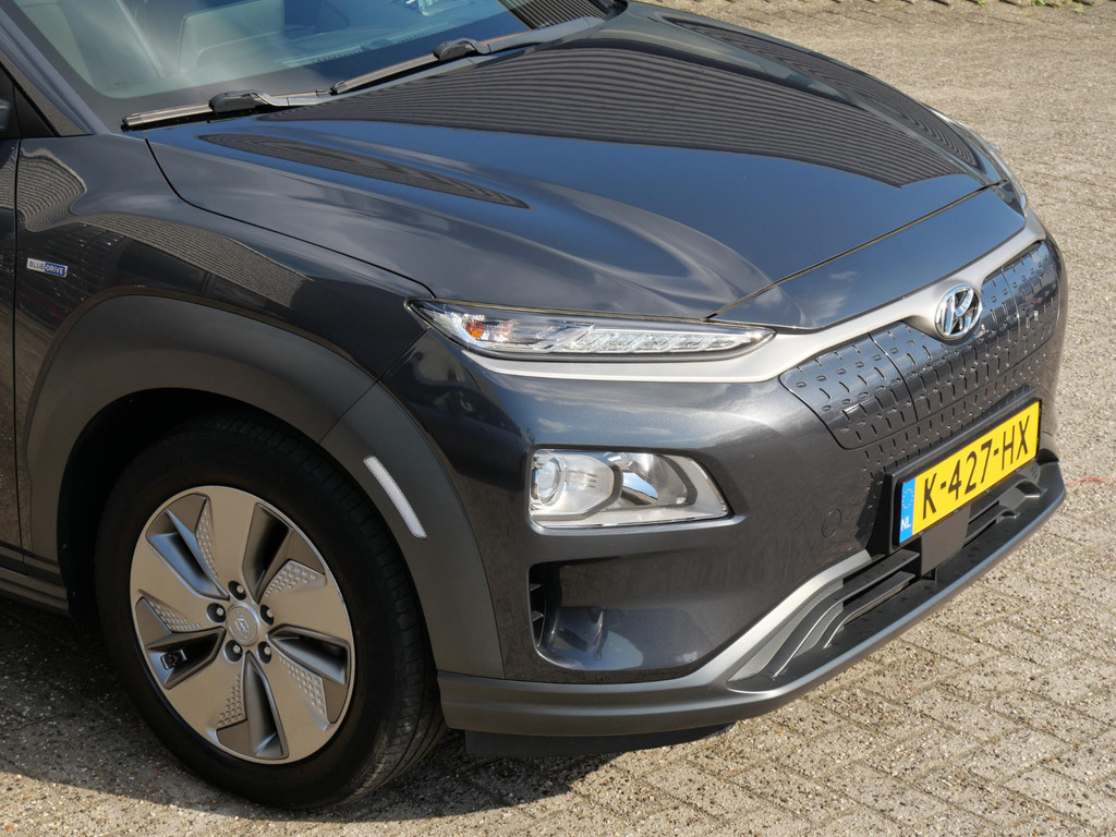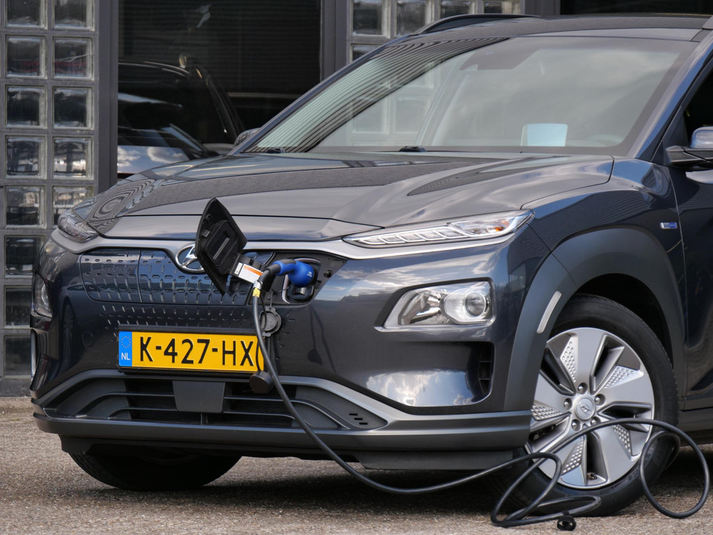 Deze Kona EV heeft een 64kWh batterij waardoor de range groter is, de auto meer vermogen heeft en ook nog eens sneller opgeladen wordt.